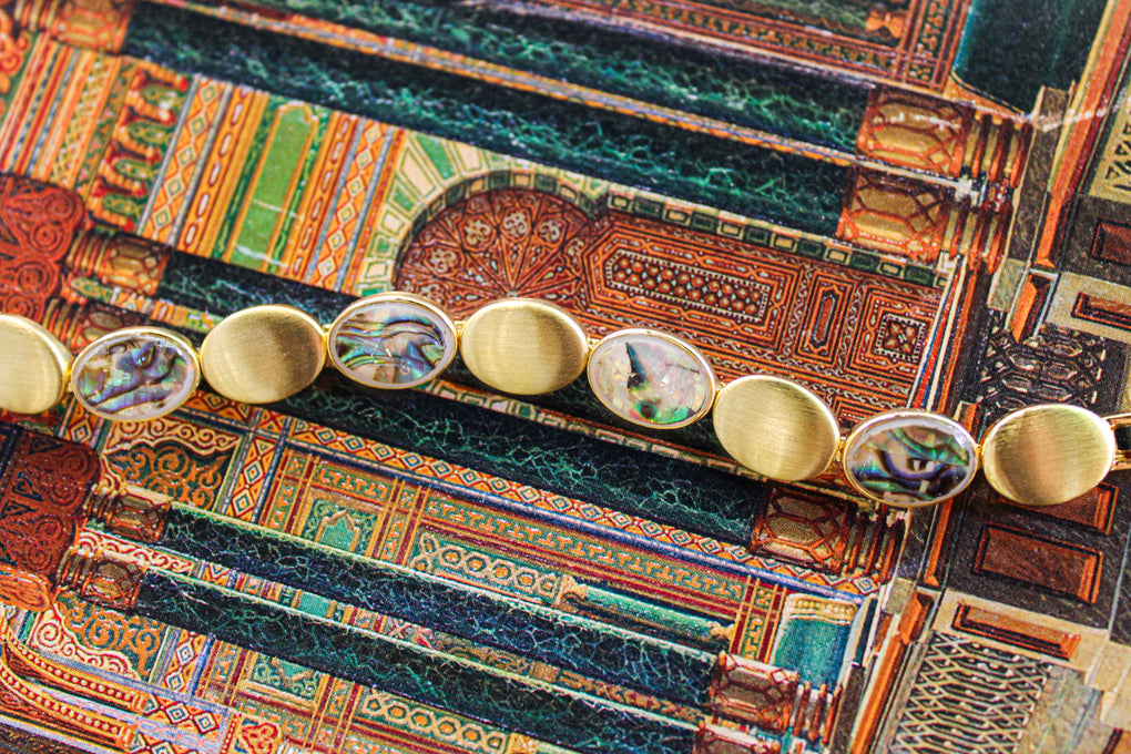 Balyan ailesinin büyülü mirası Çırağan Sarayı salonunun varaklı süslemelerinden ilham alan sedef tasarım.