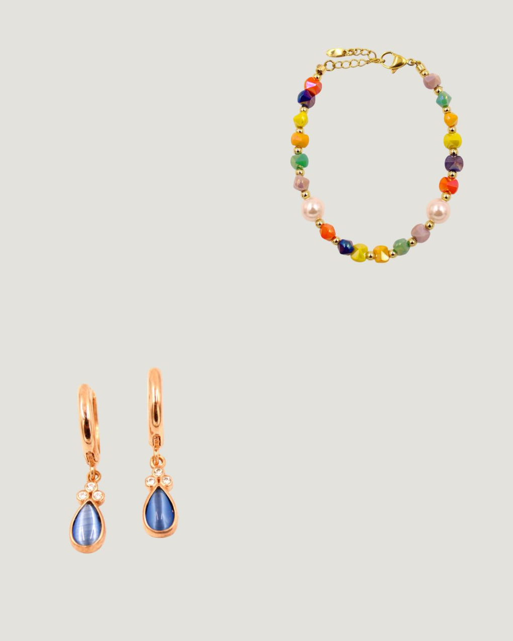 Küpe: Gümüş üzeri altın kaplama kedigözü taşı