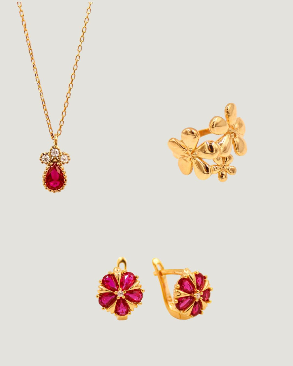 Kolye: Gümüş üzeri altın kaplama, yakut