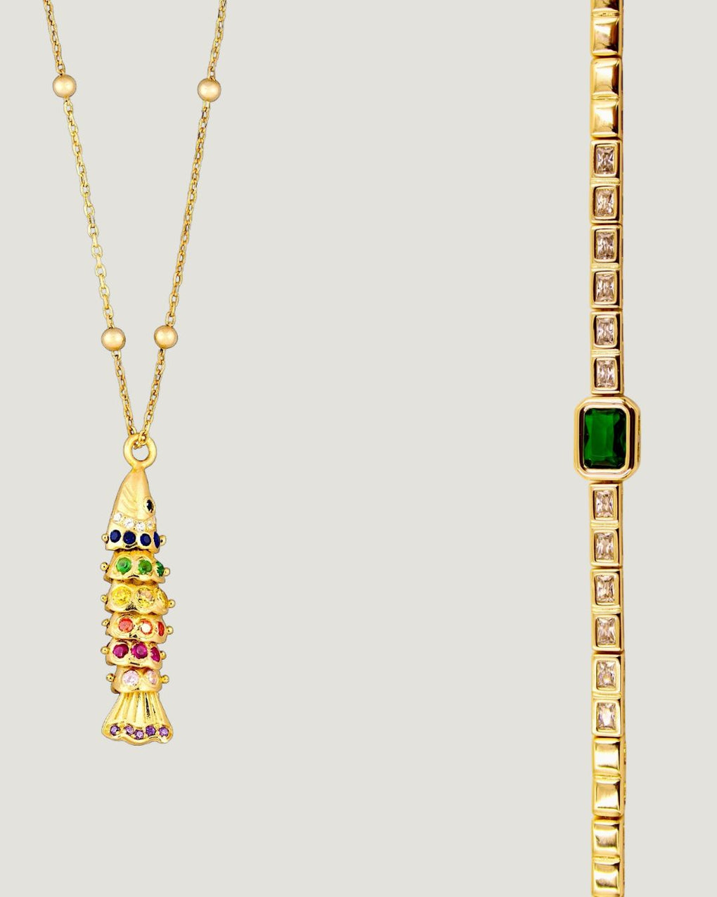 Galata Kulesinin formu balığın bereketiyle birleşerek 16.10 İstanbul'un 2019'dan beri ikonik tasarımı olan balık kolye, Pera vintage bileklikle göz kamaştıran bir bütünlük sunuyor.