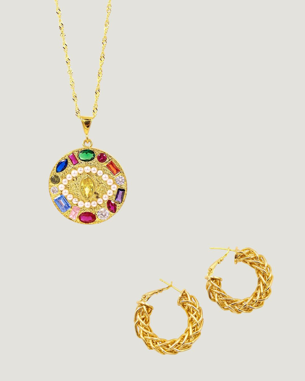 Kolye: Gümüş üzeri altın kaplama, barok inciler ve swarovski taşlar