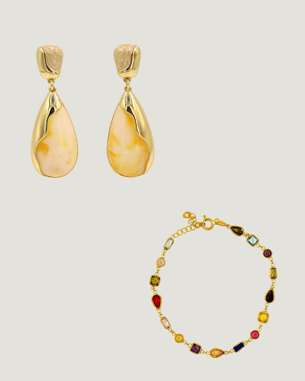 Kombinin star parçası mineli küpenin en güzel eşlikçisi İtalyan bileklik...