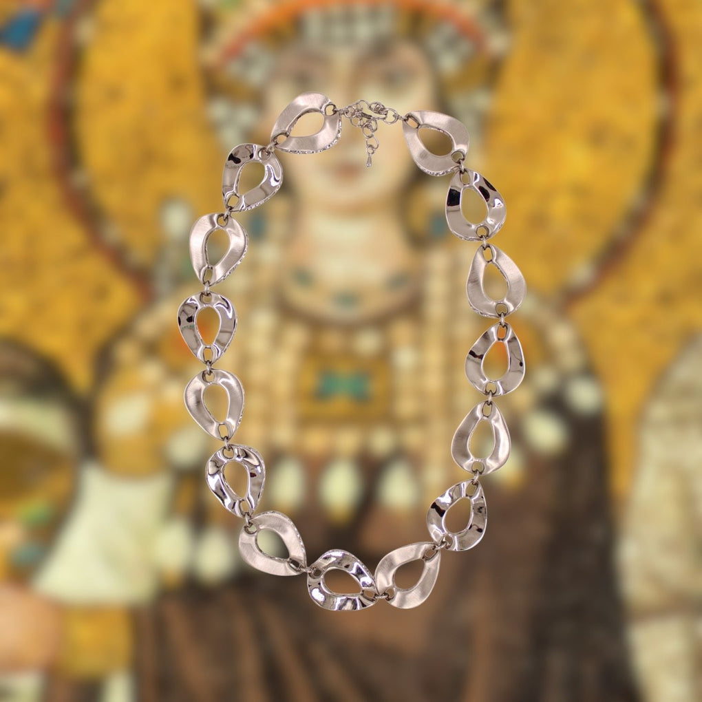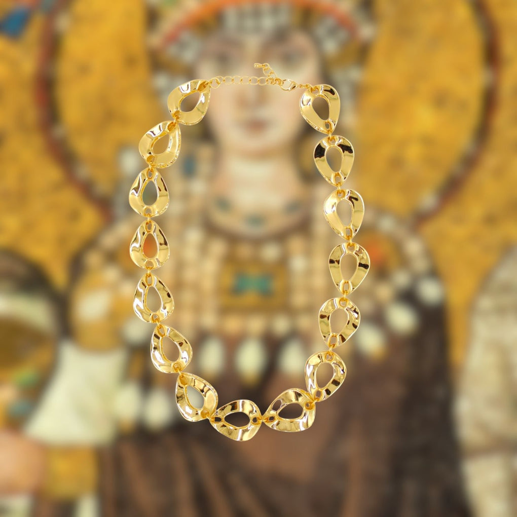 Bizans imparatoriçelerinin üst üste taktığı zincirlerden ilham alan gerdanlık formunda kolye...