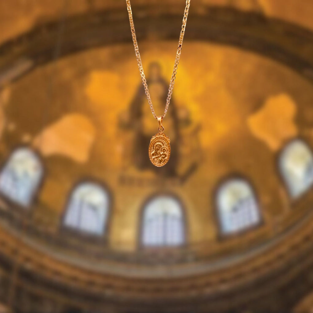 Ayasofya'da yer alan Meryem Ana ve çocuk İsa mozaiğinden ilham alan bu tasarım, Meryem Ana’nın insanlık adına dua ettiği anı yansıtır.