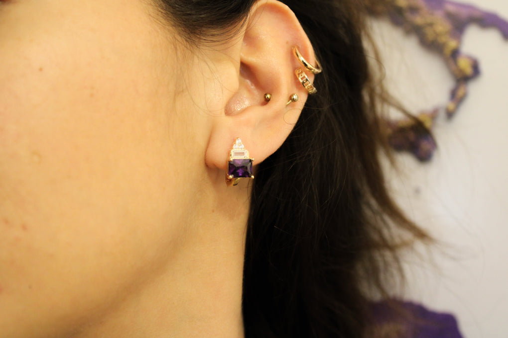 Materyal: 925 ayar gümüş üzeri altın kaplama, ametist ve zirkon